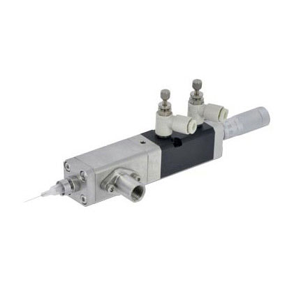 Fisnar VD510-UV diaphragm valve was engineered for precise flow control of low to medium viscosity liquids with a minimum shot size of 0.001 cc and is UV light blocking. The diaphragm separates the wetted parts from the moving parts; therefore, the valve is ideal for dispensing cyanoacrylates, reagents, electrolytes, glues, solvents, paints, alcohol and other volatile substances.
